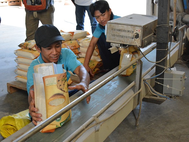 Với Nghị định 107/2018, nhiều công ty đã đủ điều kiện xuất khẩu gạo, giảm chi phí, mở rộng thị trường. Trong ảnh: Công nhân Công ty Cỏ May đóng gói gạo xuất khẩu. Ảnh: QH